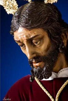 Podríamos resaltar, además de la expresividad de sus manos, en su rostro, el vivo reflejo de soledad e incomprensión humana, al aparecer maniatado y en solitario, sobre todo cuando observamos su mirada serena, aunque a su vez aguda y penetrante. Su pelo y sus fruncidas cejas, morenas. La tez de su piel, oscura. Sus ojos, castaños.