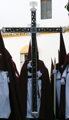 La cruz de guía de Nuestra Hermandad se realiza en el año 1993 y procesionó ese mismo año sin tallar y sin aplique alguno. Es de madera de caobilla barnizada en color caoba oscuro y tallada por Francisco Palo Chaparro en el año 1994. La rematan tanto en la parte superior como en la inferior apliques de alpaca plateada de orfebrería Manuel de los Ríos.