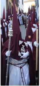 Destacar la presencia y custodia del paso por los cuatro manigueteros, nazarenos de capa que procesionan sin capirote.